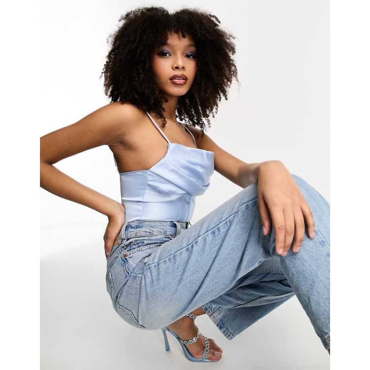 Bershka corset satin top in baby blue ASOS Very well made.