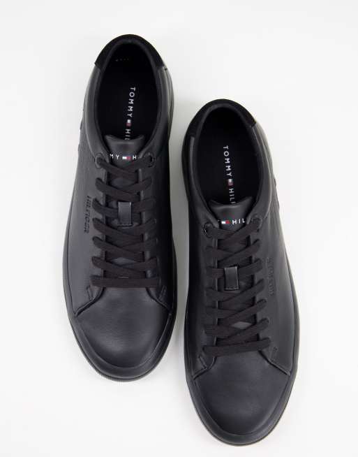 Tommy Hilfiger premium vulc leather sneakers with small side flag in black Very well made.