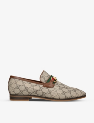 GUCCI Paride web stripe embellished canvas loafers Very well made.