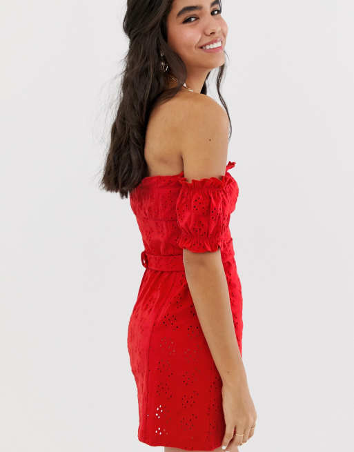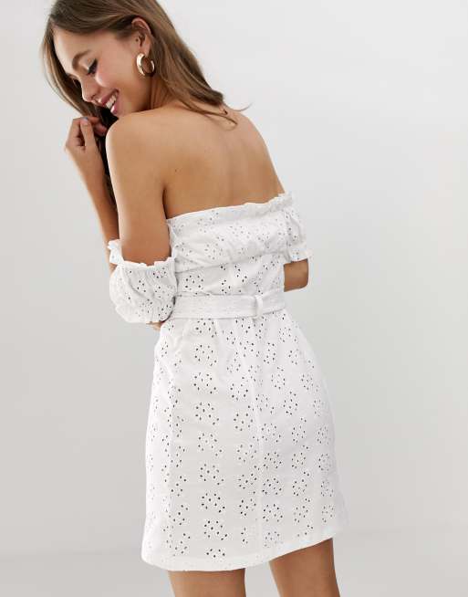ASOS DESIGN bardot mini broderie sundress with faux tortoiseshell belt Very well made.